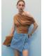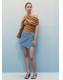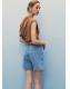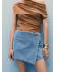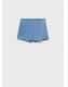 Tejido de algodón estilo tejano vaquero. Diseño corto. Falda pantalón. Diseño cruzado. Tiro medio. Cierre de botón en la parte delantera. Cierre de cremallera en la parte posterior. Diseño falda pantalón