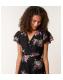 Blue Vanilla Black Floral Mesh Wrap Style Mini Dress