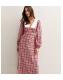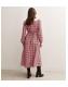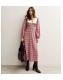Pink Crepe Check Print Collar Detail Midi Dress