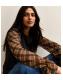Black Soft Touch Contrast Checked Sleeve Top