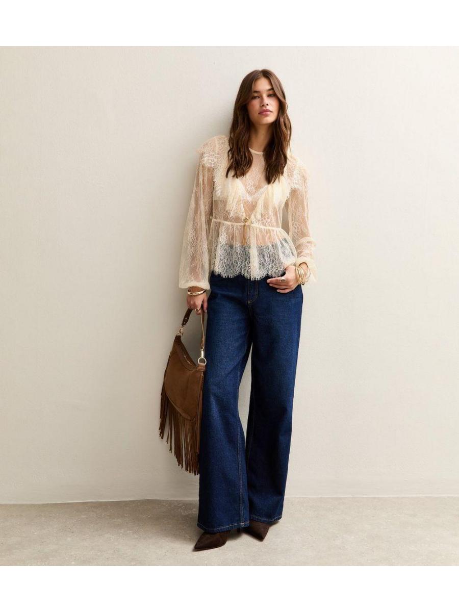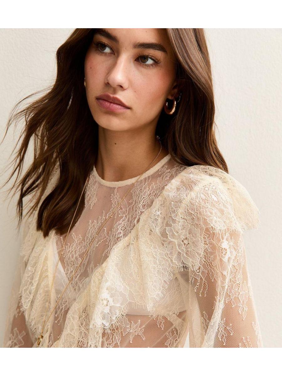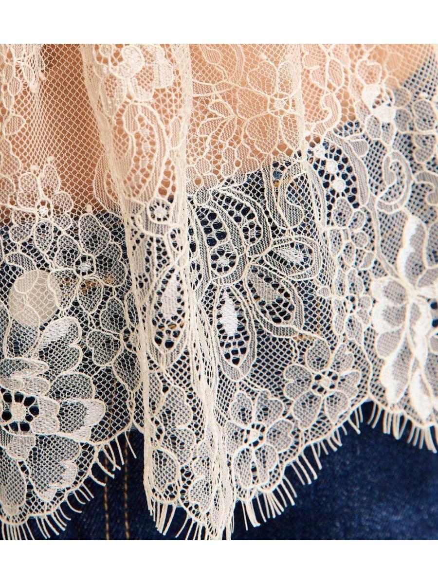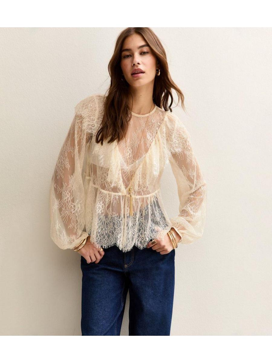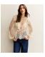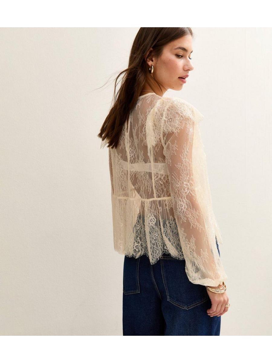 White Floral Lace Long Sleeve Semi Sheer Blouse