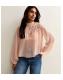 Pink Chiffon Lace Trimmed High Neck Blouse