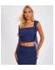 QUIZ Dark Blue Frilly Trimmed Crop Top