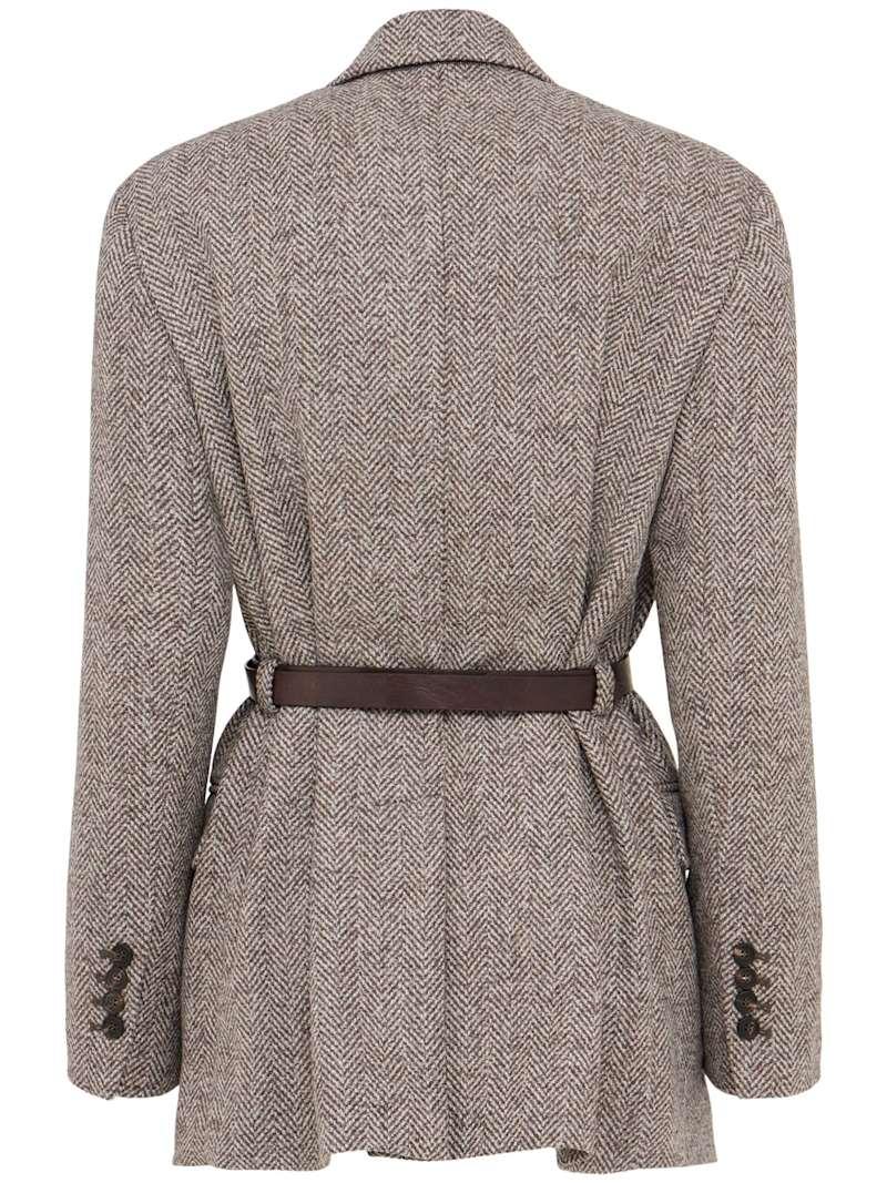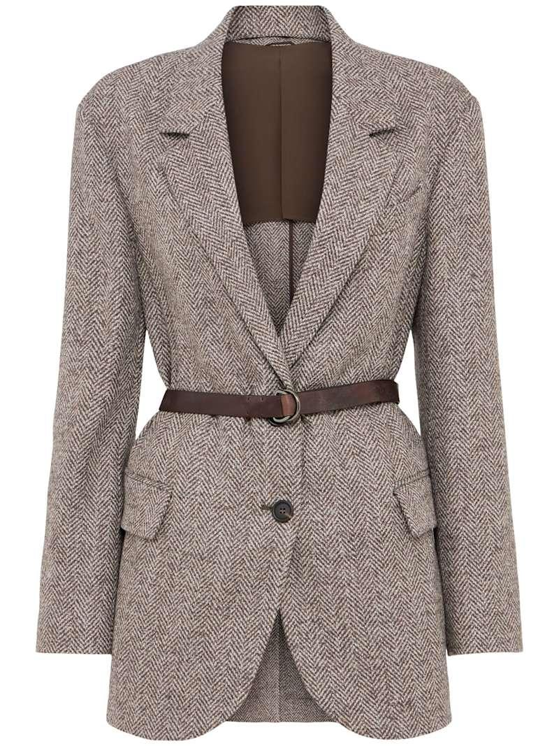 系腰带羊毛混纺西服夹克 - 棕色/多色 - 女士 - Brunello Cucinelli - 正面纽扣开合.