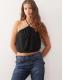 COLLUSION slinky halter neck with lace trim detail in black