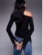 ASOS DESIGN off shoulder slinky asymmetric top in brown