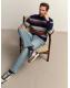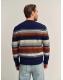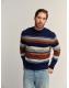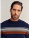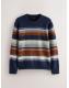 Navy Blue Relaxed Fit Cosy Stripe Crew Jumper with Wool