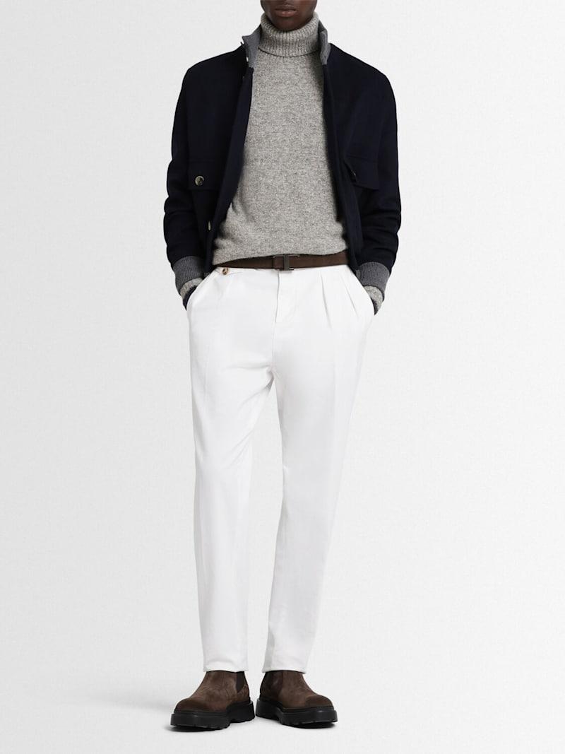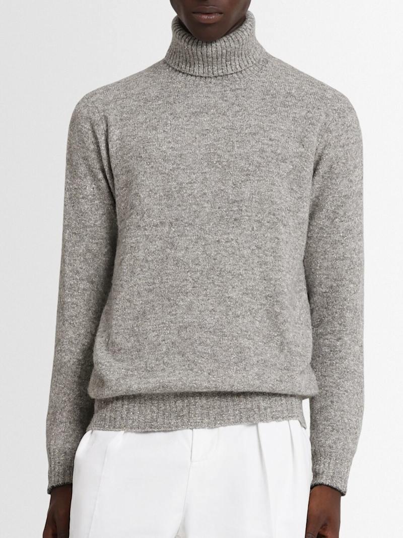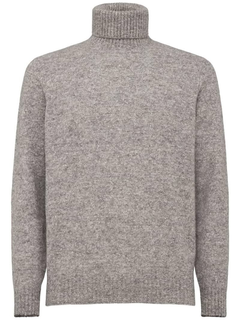 羊驼毛混纺针织高领毛衣 - 灰色 - 男士 - Brunello Cucinelli - 罗纹边缘