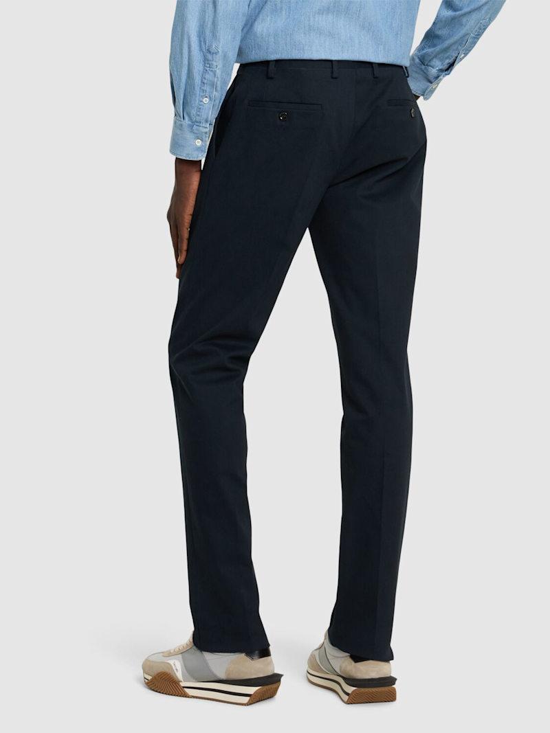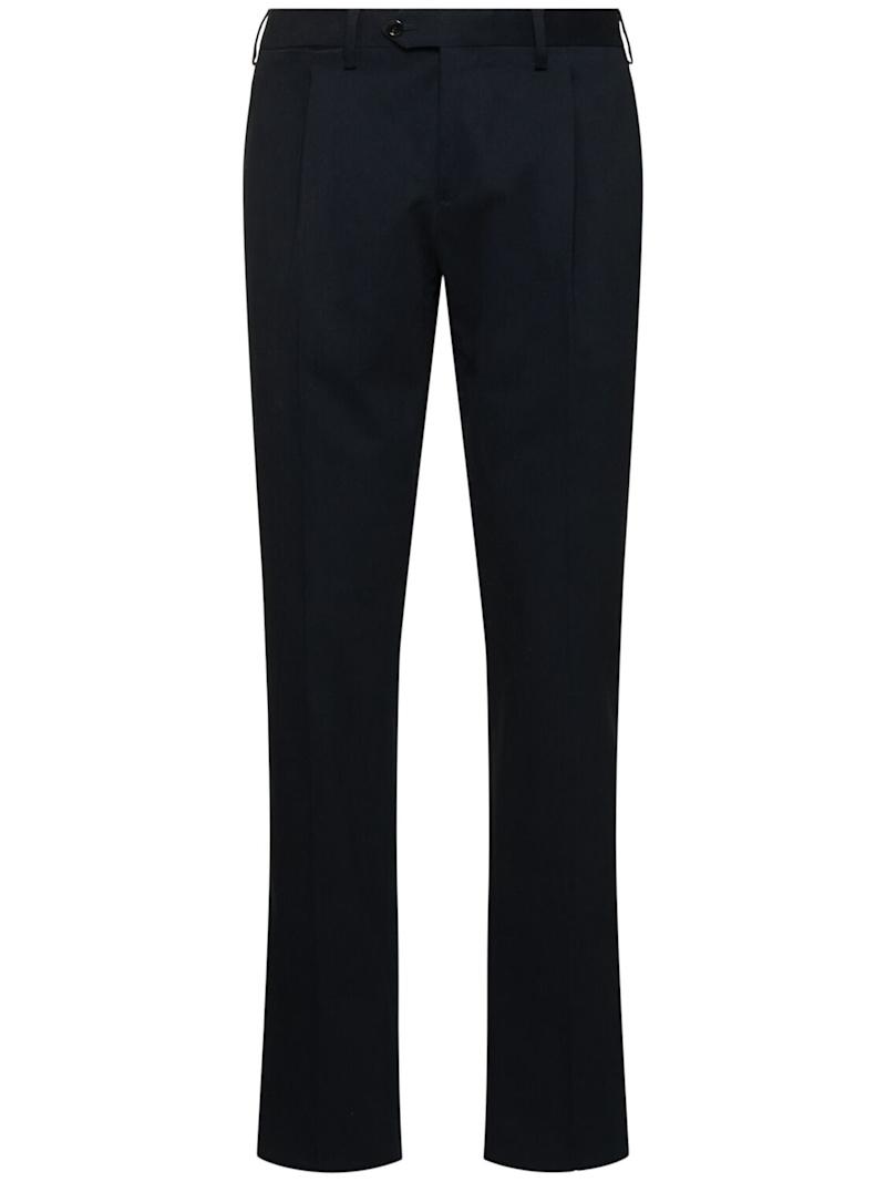 单排扣弹力棉质裤子 - 蓝色 - 男士 - Lardini - 隐藏式正面粘扣开合.