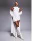 Aria Cove fluffy soft-touch knit maxi cardigan and high neck sleeveless mini jumper dress co-ord in white