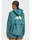Head to the gym or dance class in this adidas windbreaker that lets you take on wind and light rain without missing a beat. Loose-fitting and sporty, it features mesh panels for breathable comfort. Batwing sleeves and a curved, drawcord-adjustable hem add stylish appeal. This product is made with at least 70% recycled materials. By reusing materials that have already been created, we help to reduce waste and our reliance on finite resources and reduce the footprint of the products we make.Sport: Training & FitnessWeather: RainCollar: HoodCollar: High-fasteningExtras: Drawstring hemVentilation: Rear ventsFastening: ZipPockets: Zip pocketsFastening: Continuous front zipSleeve cuffs: ElasticHood detail: DrawstringPattern: PrintQualities: Windproof, moisture wicking, breathable