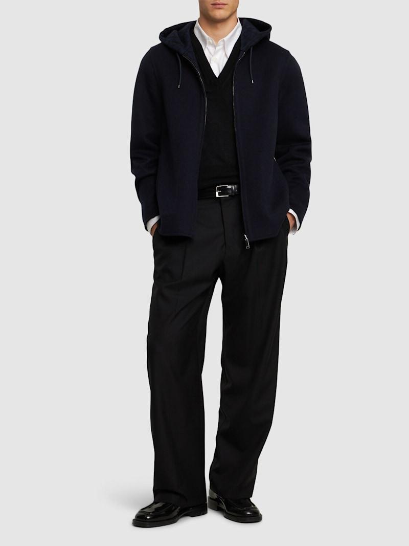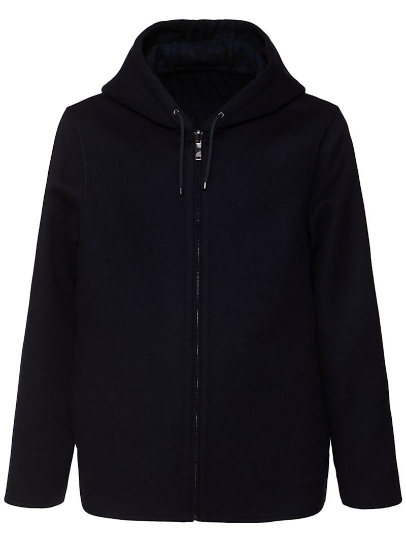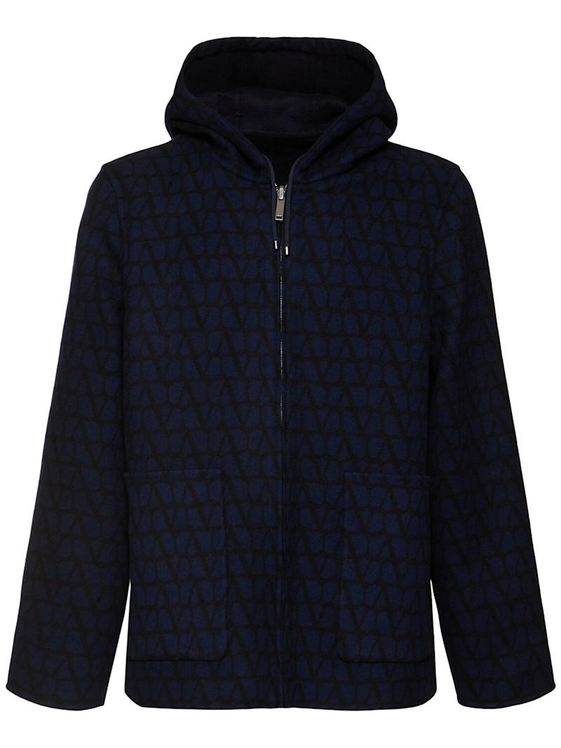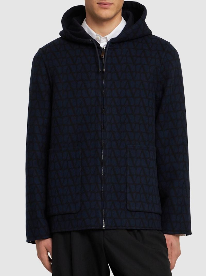 Toile Iconographe羊毛大衣 - 海军蓝 - 男士 - Valentino - 不可拆卸风帽配有抽绳.