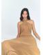 Tejido de gasa. Diseño semitransparente. Diseño largo. Diseño recto. Cuello halter cruzado. Cuello drapeado. Detalle costuras. Detalle de pinzas delanteras y traseras en el bajo. Cierre de cremallera en la parte posterior. Forro interior. La modelo mide 1,80 y lleva una talla S/36. Colaboración SUPRIYA LELE X MANGO. En colaboración con la reconocida diseñadora indio-británica, Supriya Lele x Mango se inspira en un paisaje onírico y evocador, donde fantasía y realidad se entremezclan. Con siluetas sensuales y fluidas, la colección evoca la calidez y la ligereza de las noches de verano en la ciudad