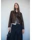 Efecto piel. Diseño corto. Diseño recto. Cuello camisero. Manga larga. Dos bolsillos de parche frontales. Cierre delantero con botones. Forro interior