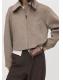 Tejido mezcla de lana. Diseño corto. Diseño recto. Cuello camisero. Manga larga con puños abotonados. Dos bolsillos laterales. Cierre de cremallera. Forro interior