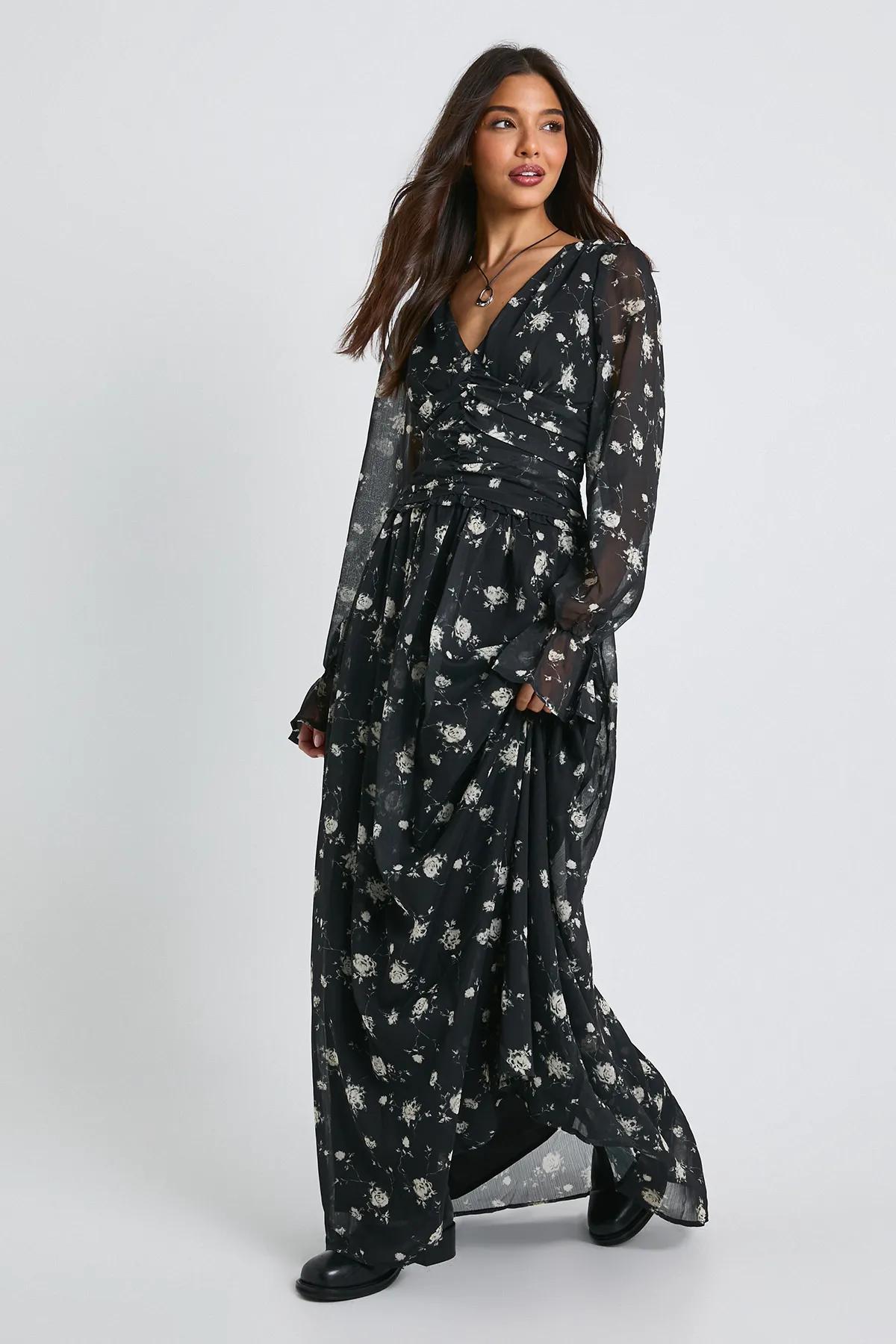 Discover Floral Ruched Waist Maxi Dress available to buy online at boohoo.com. Available with quick delivery and easy return options. Shop now!