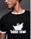 Slogan text and graphic print on front