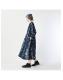 インドカディブーケストライププリントのパフブリッジドレス(インディゴ)