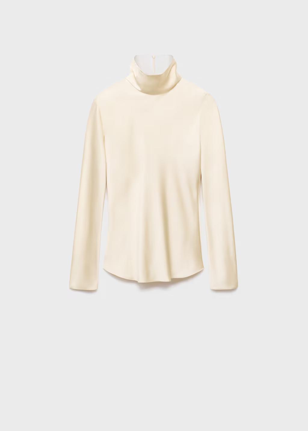 Confeccionada en tejido satinado, esta prenda presenta un diseño recto con cuello alto y manga larga. El cierre de cremallera en la parte posterior añade funcionalidad. Colección Selection. Una selección de prendas refinadas, confeccionadas con tejidos de calidad para construir un armario femenino y contemporáneo