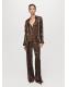 Confeccionada en tejido satinado, esta prenda presenta un diseño recto con un estampado de rayas combinadas. Incluye un cuello camisero y manga larga con puños abotonados. Cuenta con un pantalón a conjunto