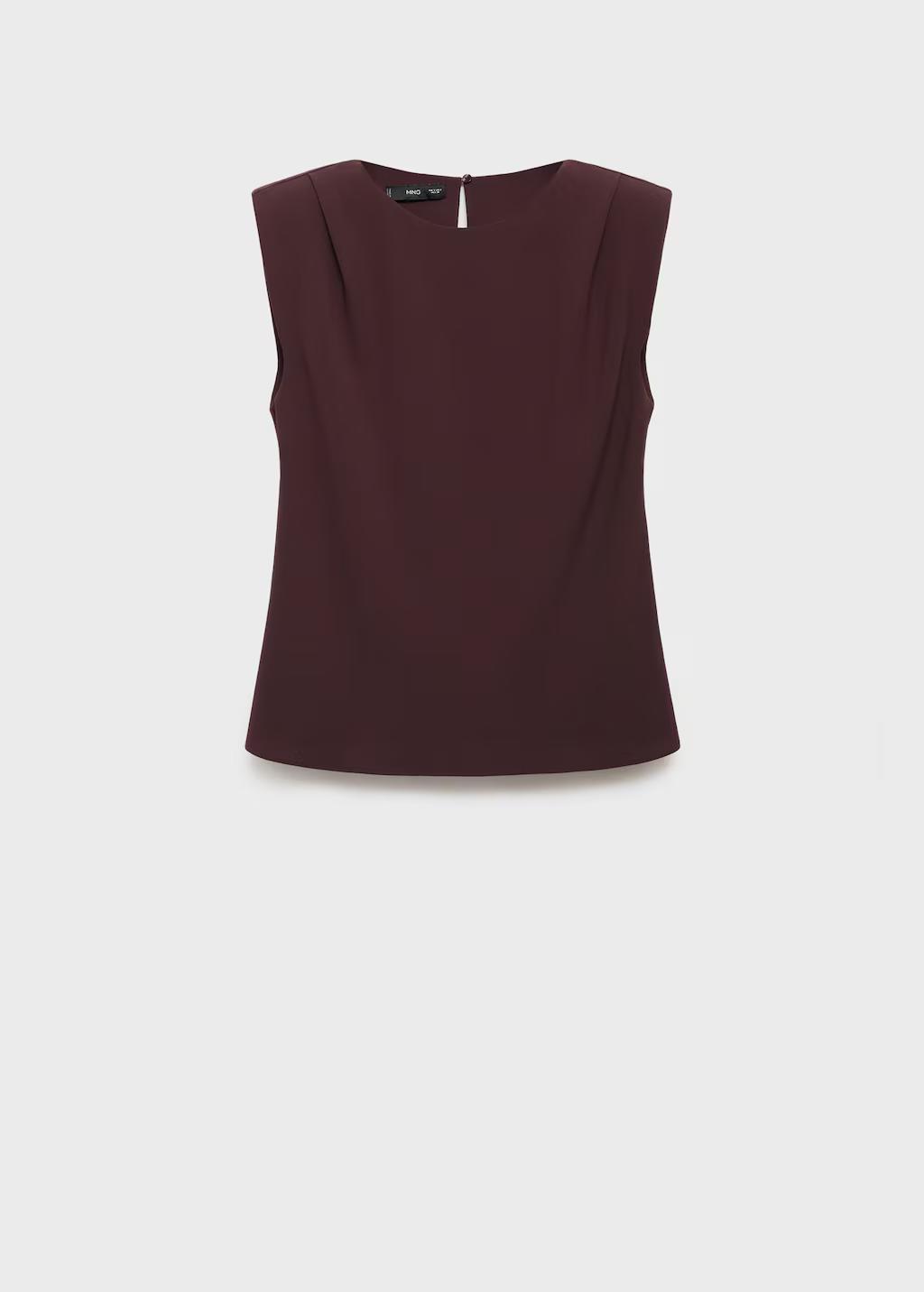 Diseño recto. Cuello barco. Manga corta. Hombreras. Detalle fruncido en el hombro. Cierre de botón en el cuello. Disponible Plus