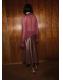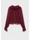 Confeccionada en tejido semitransparente, esta prenda presenta un diseño oversize con un cuello drapeado adornado con un fular. Las mangas largas tienen puños elásticos y el cierre de botón se encuentra en la parte posterior