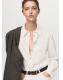 Con un diseño recto, esta prenda presenta un elegante cuello camisero y manga larga con puños abotonados. Los botones efecto joya adornan el cierre delantero, aportando un toque distintivo