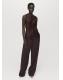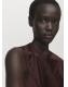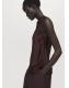 Confeccionada en tejido satinado con efecto arrugado, esta prenda presenta un diseño recto con cuello redondo y manga sisa. El color marrón es exclusivo online