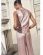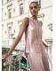 Confeccionada en tejido satinado con efecto arrugado, esta prenda presenta un diseño recto con cuello redondo y manga sisa. El color marrón es exclusivo online