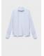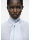 Con un diseño recto y tejido con textura, esta prenda presenta un cuello alto envolvente adornado con un fular. La manga larga tienen puños abotonados y el cierre de botón en el cuello completa el estilo sofisticado