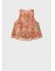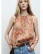 Confeccionada en tejido plisado, esta prenda presenta un diseño recto con estampado floral. El cuello redondo y los tirantes anchos aportan comodidad, mientras que el volante en el bajo añade un toque distintivo