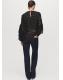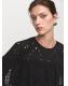 Con tejido mezcla de algodón y bordados perforados, esta prenda presenta un diseño recto con volantes que aportan movimiento. El cuello redondo y la manga larga se complementan con un cierre de lazo en el cuello