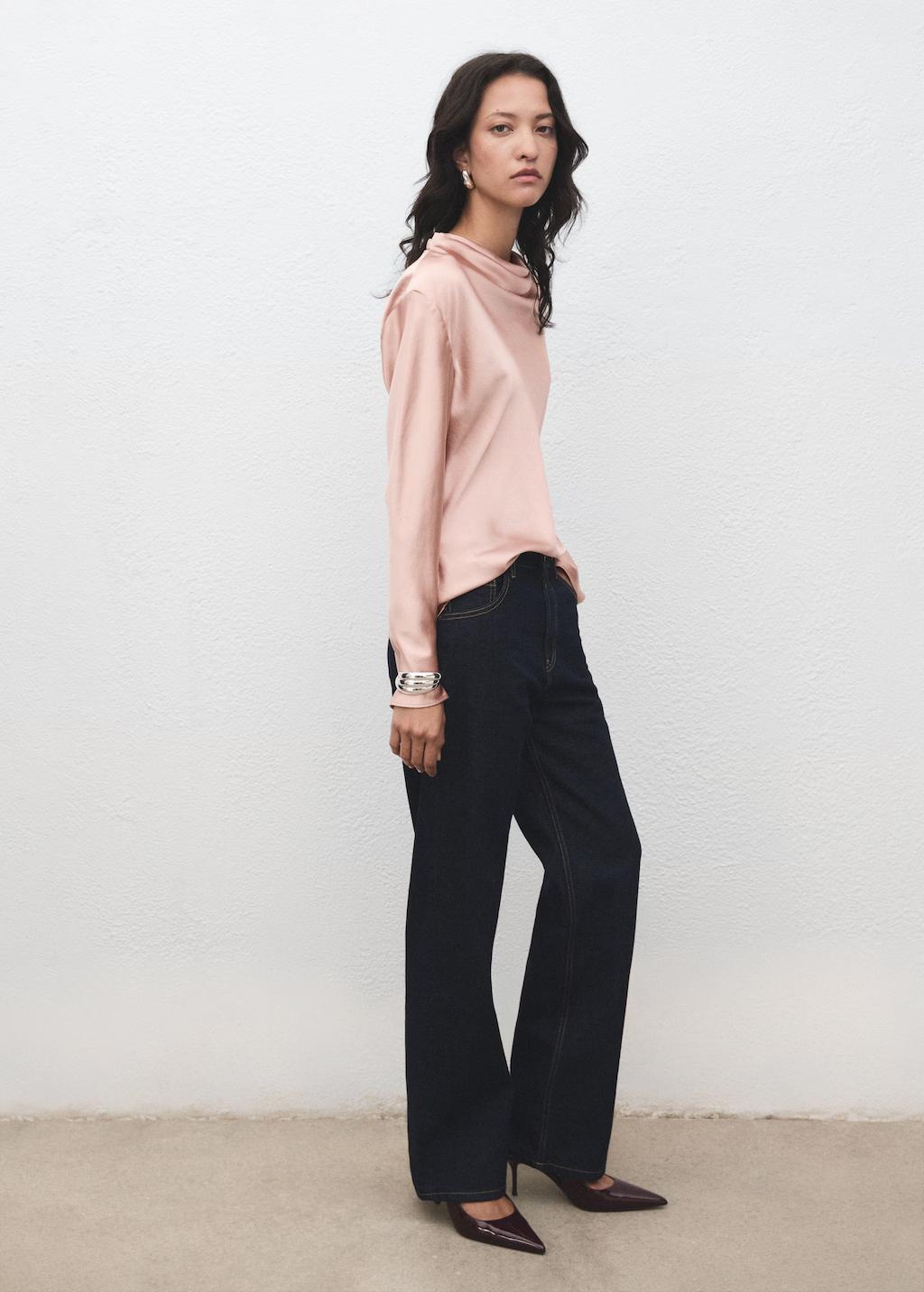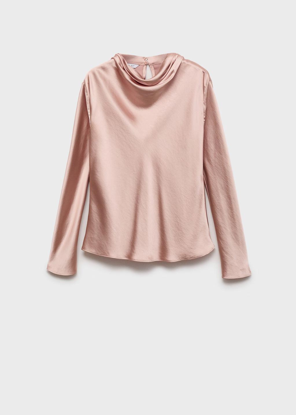 Tejido satinado. Diseño recto. Cuello drapeado. Manga larga. Cierre trasero