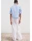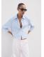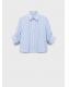 Esta camisa de rayas cuenta con un cuello camisero clásico y manga tres cuartos. Presenta un bolsillo pequeño en el pecho y una botonadura frontal discreta. Los detalles de strass distribuidos por toda la prenda añaden un toque distintivo. Perfecta para un estilo moderno y versátil