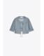 Camisa crop confeccionada en algodón 100%. Cuello bobo y manga corta abullonada. Detalle de flores bordadas. Cierre frontal con abertura y lazadas.