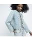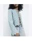 Blue sequin tie up quilted jacket