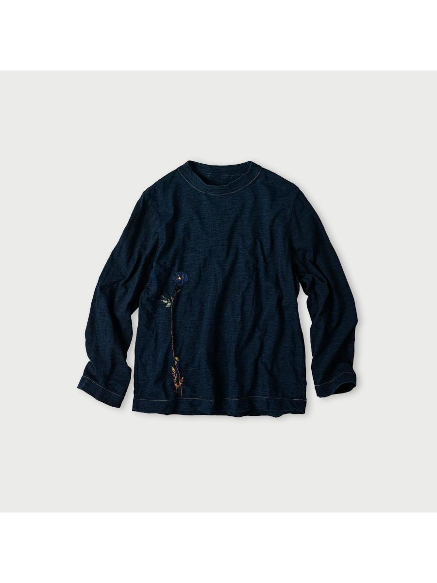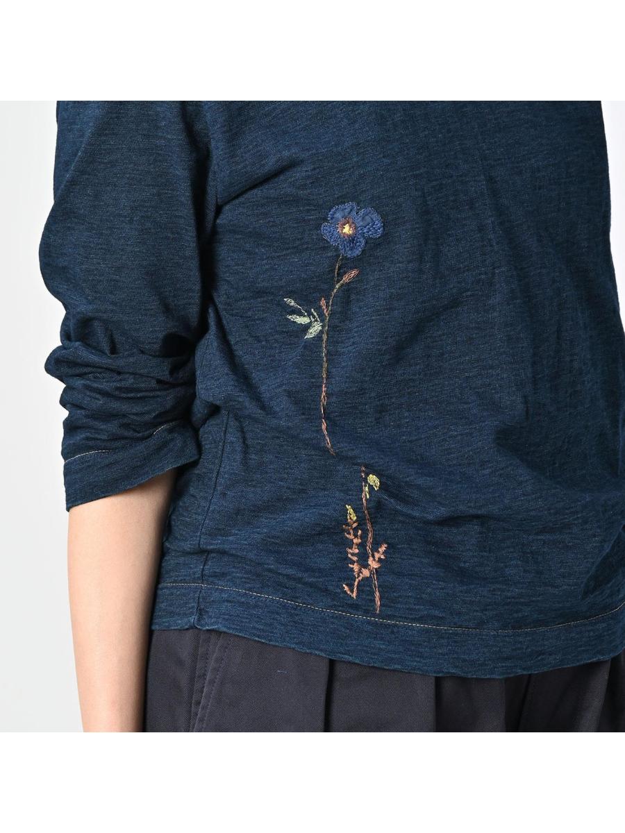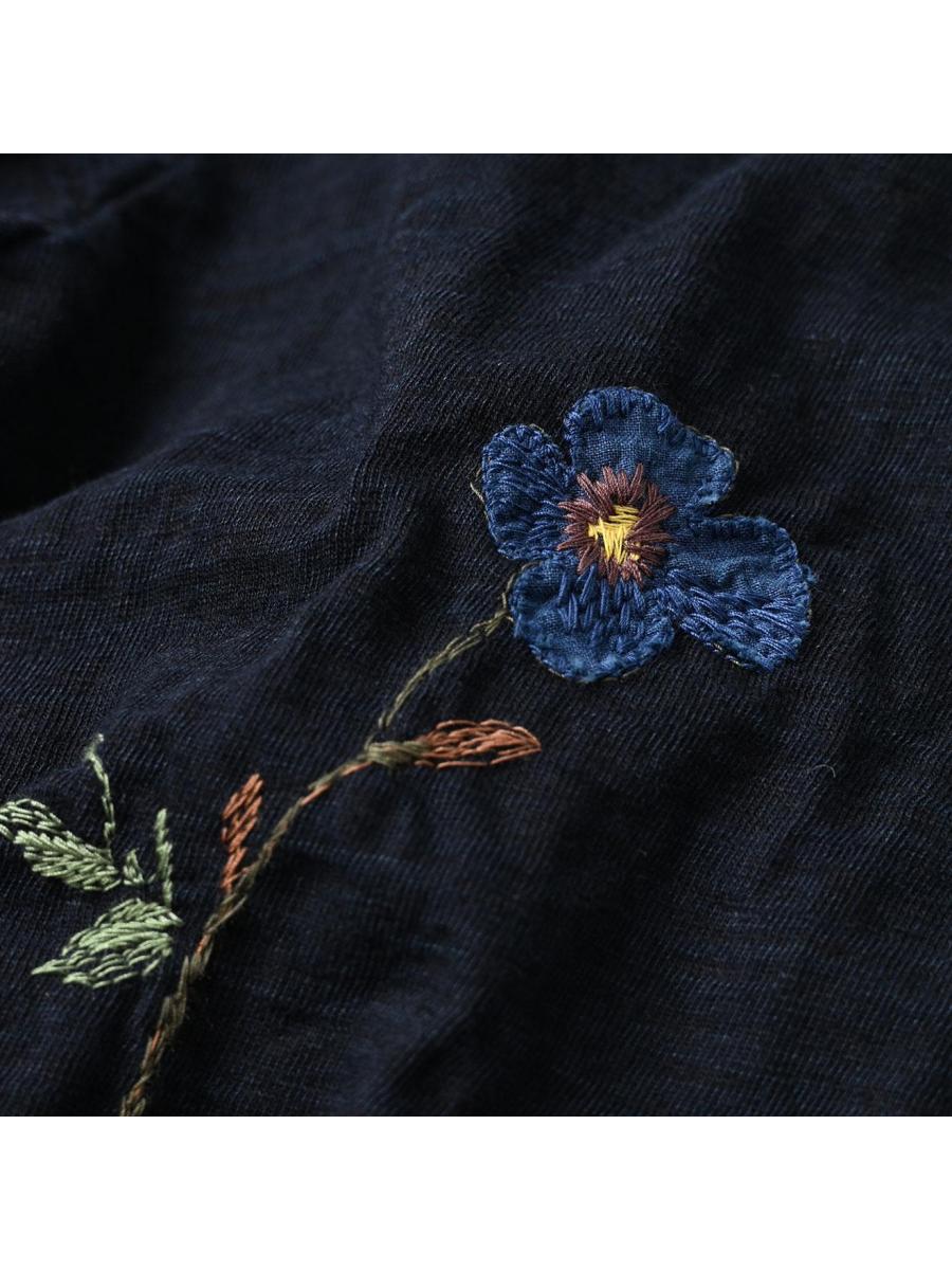 アネモネ刺繍の四角Tシャツ(再び・インディゴ)