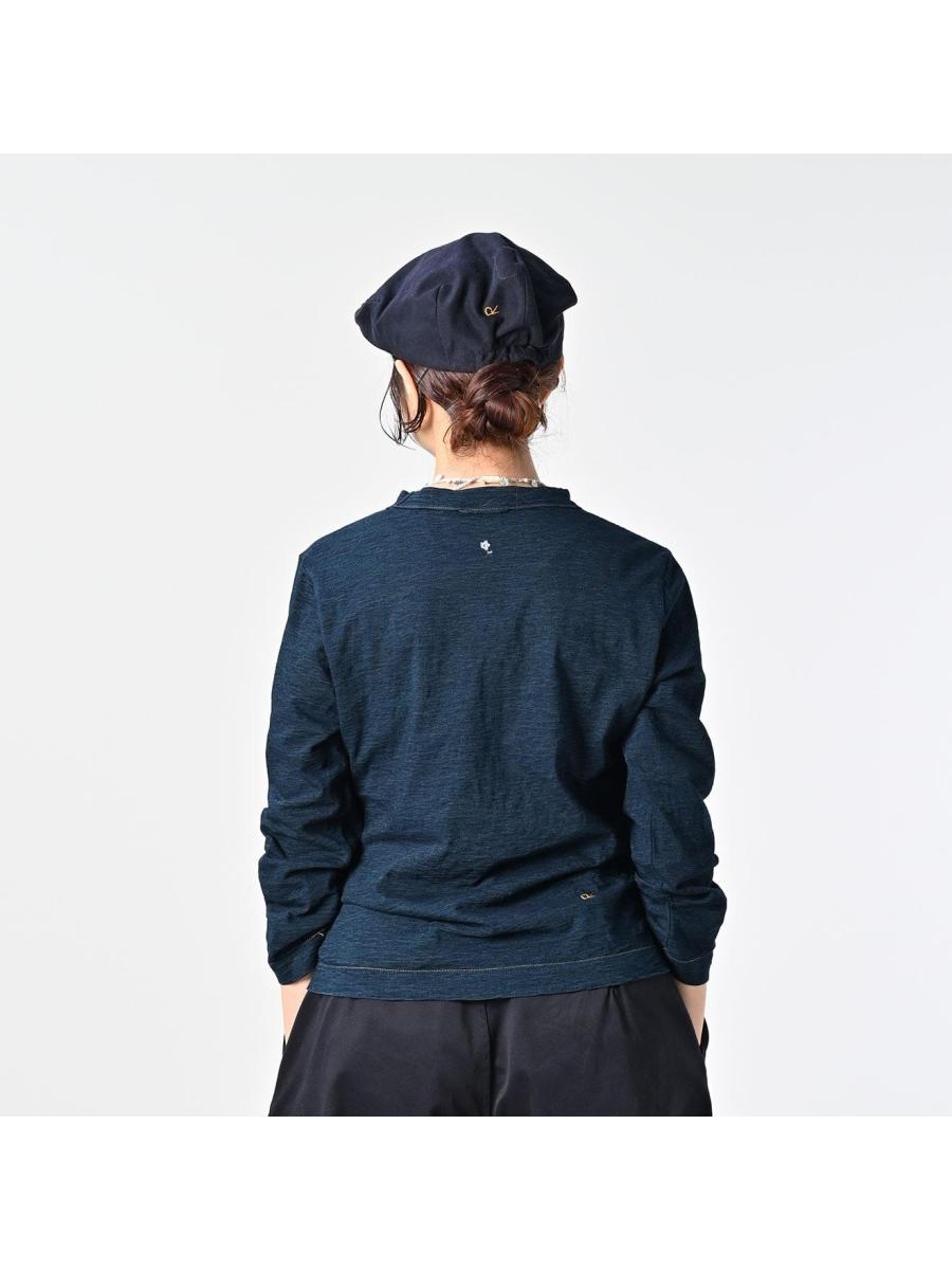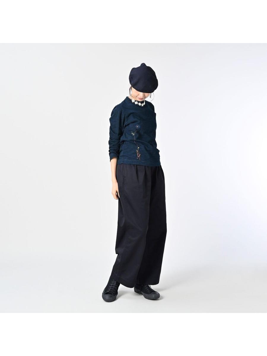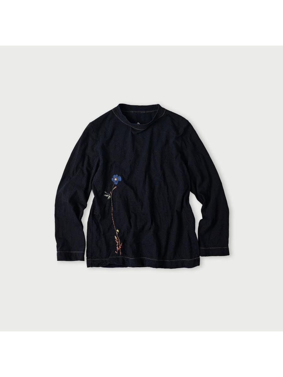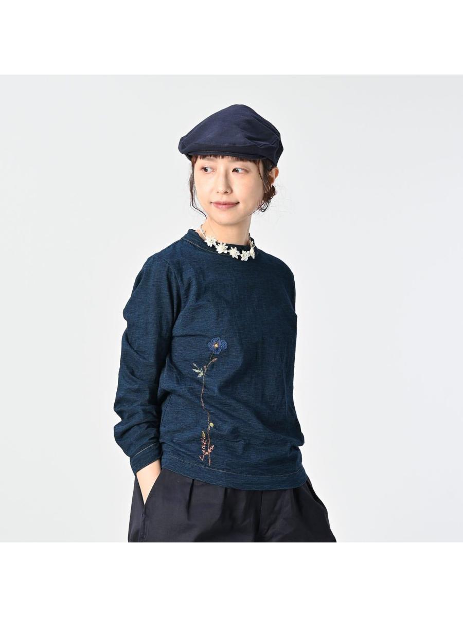 アネモネ刺繍の四角Tシャツ(再び・インディゴ)
