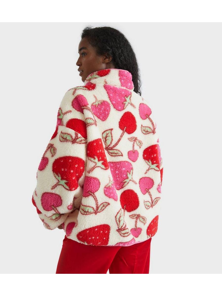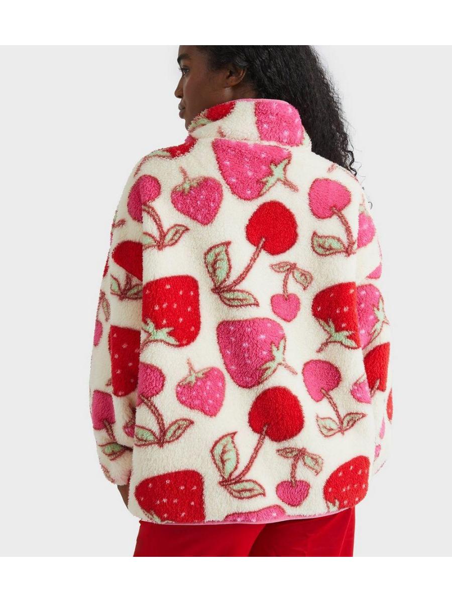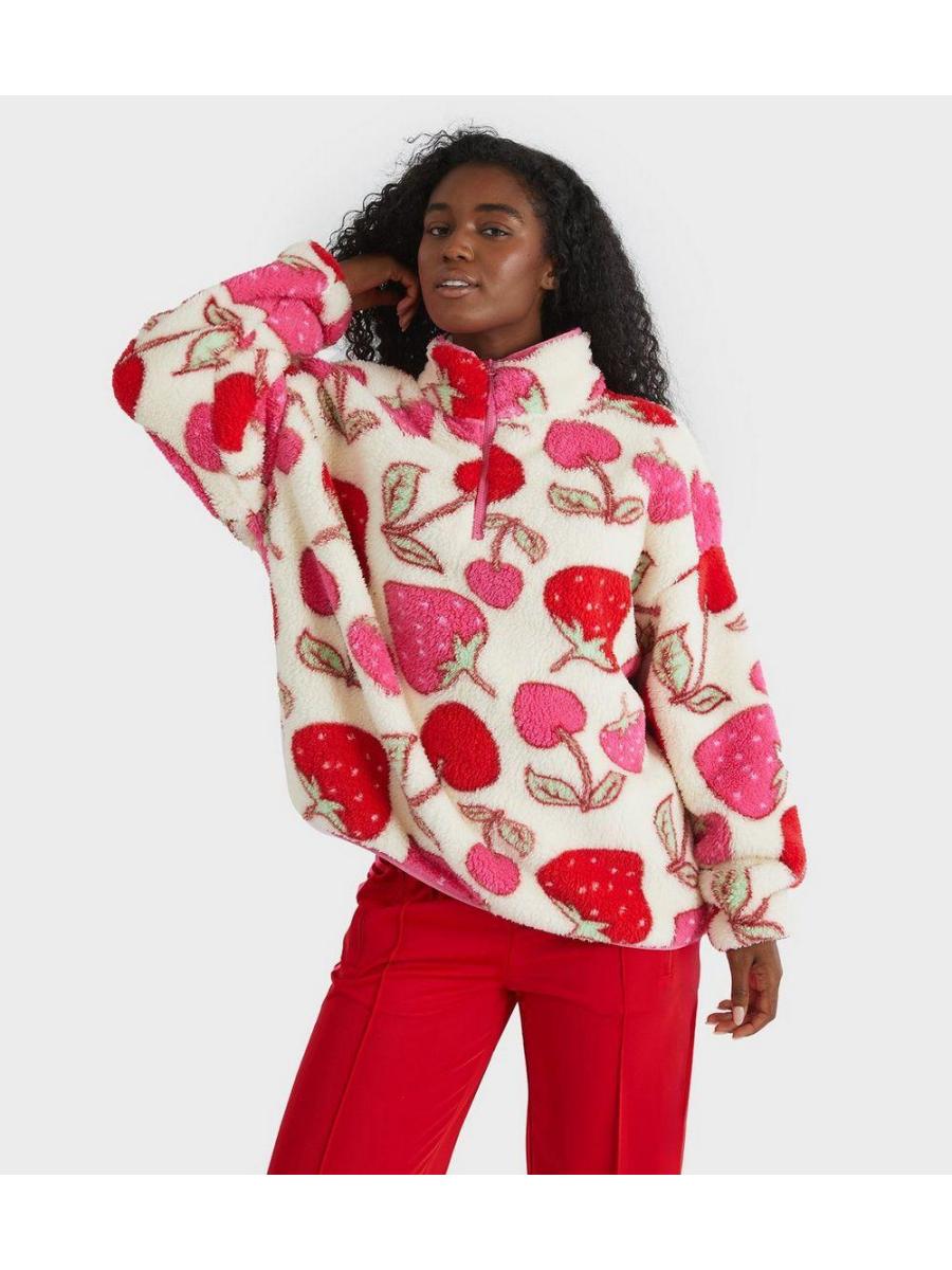 Skinnydip Cream Berry Pattern Fleece Sweatshirt