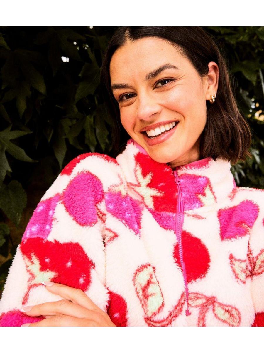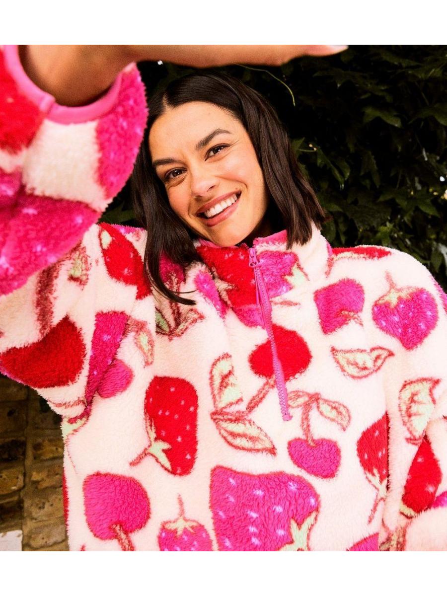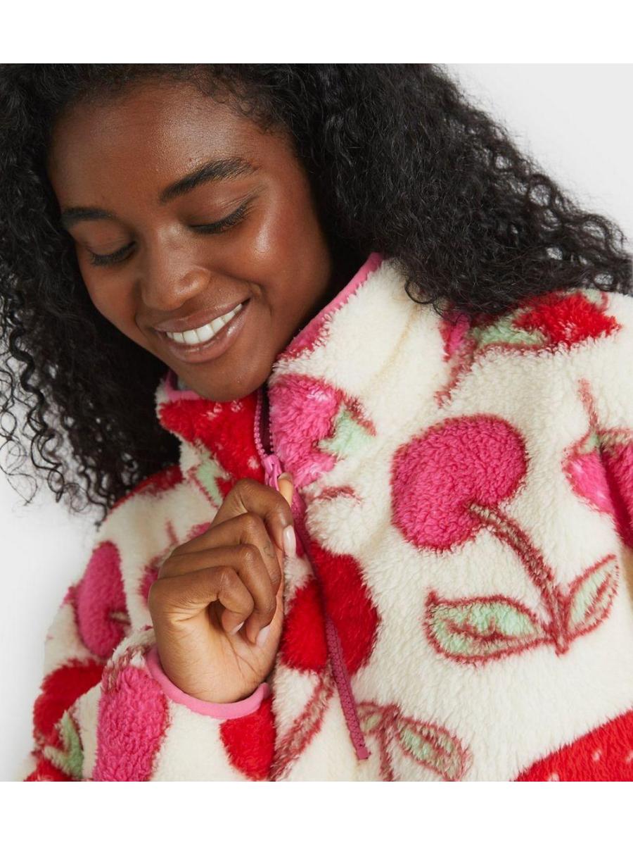 Skinnydip Cream Berry Pattern Fleece Sweatshirt