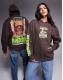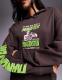 Graphic and text print on front, back, and sleeve