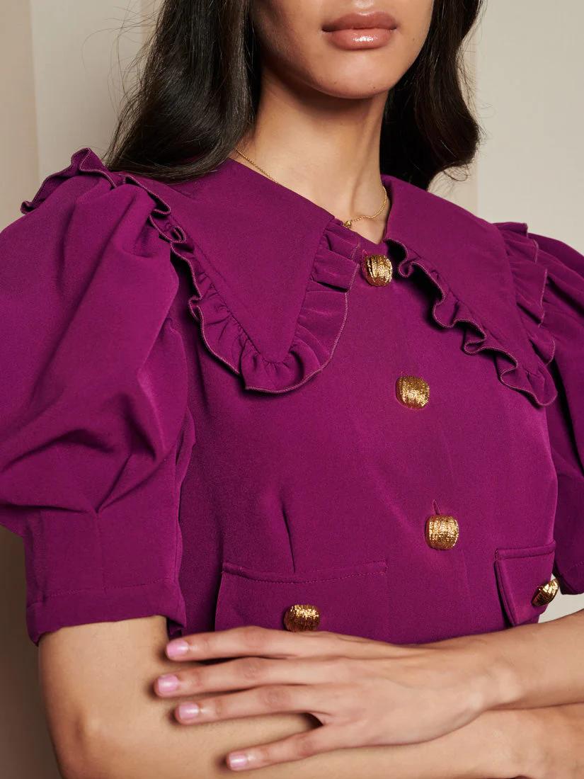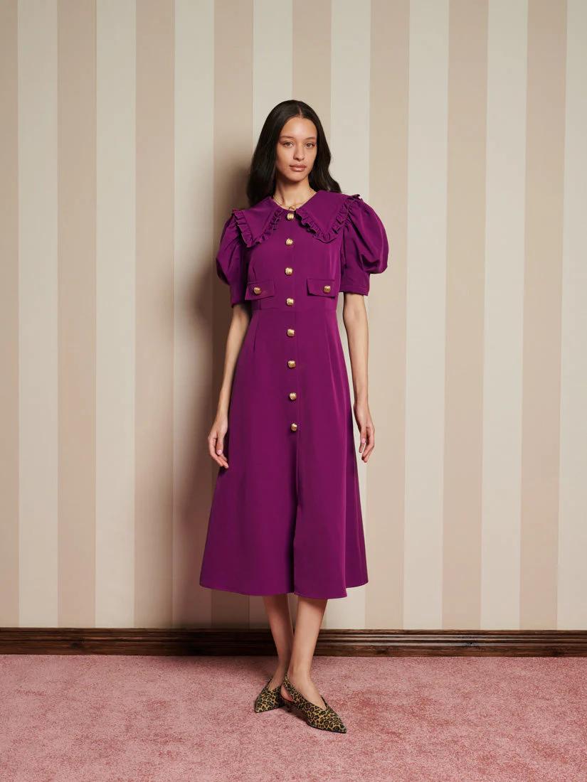 With its statement collar and golden buttons, the Spice Jar Midi Dress brings elegance to the table.