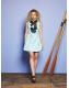 Where lake meets land, this jacquard mini glimmers. With contrast bows and a front split, it’s for the curious heart, always peering past the reeds.