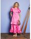 Sunbeams stitched into fabric-this taffeta maxi flows with a cascade of ruffles. Wear it where the trees open to the sky and every shadow tells a story. The Perfect companion? You can never go wrong with the charming Tansy Beaded Bag.