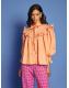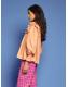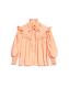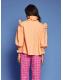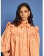 Bathed in the soft glow of dusk, The Sunset Ruffle Blouse is a symphony of ruffles and voluminous sleeves. Gold-edged pearl buttons shimmer like stars emerging at twilight, tied gently at the neck with a grown-on bow.