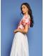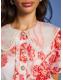 Whisper-soft floral organza jacquard wraps you in delicate charm. Gold-edged pearlescent buttons gleam like morning dew, while the pearl-trimmed collar frames your face with a halo of elegance and whimsy.