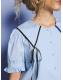 A sailor’s collar trimmed in satin and bows-The Glassy Bowed Collar Blouse sings of boat rides and braids undone by the breeze. Pearlescent buttons complete the charm.