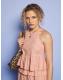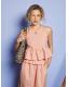 Made for golden hour moments. This racer-neck crop clings gently at the waist, like the hush just before dawn. A perfect pairing to the Sunrise Ruffle Waist Trousers for those dream-drenched mornings on the veranda.