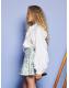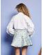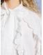 The Breeze Bow Blouse blends vintage charm with modern romance. Featuring scalloped lace ruffles, a statement neck bow, and soft billowy sleeves, it’s a light, elegant piece perfect for dreamy days and effortless style.