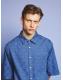 Woven like the cabin walls themselves-this check-embossed denim shirt feels familiar and fresh. Flat gold buttons and a removable necktie complete the lakeside explorer’s uniform. Perfectly paired with Cabin Embossed Jeans and barefoot dreams.